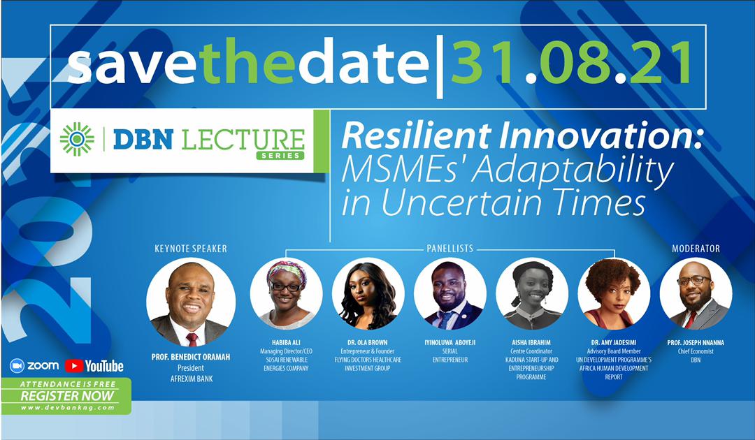 The Development Bank of Nigeria (DBN) Plc specially invites you to its 2nd Annual Lecture Series themed Resilient Innovation: MSMEs’ Adaptability in Uncertain Times.
